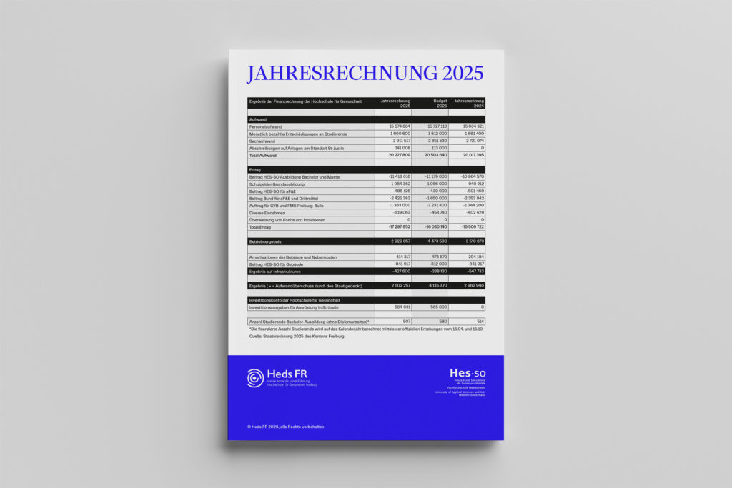 | Ergebnis der Finanzrechnung der Hochschule für Gesundheit | Jahresrechnung 2025 | Budget 2025 | Jahresrechnung 2024 |